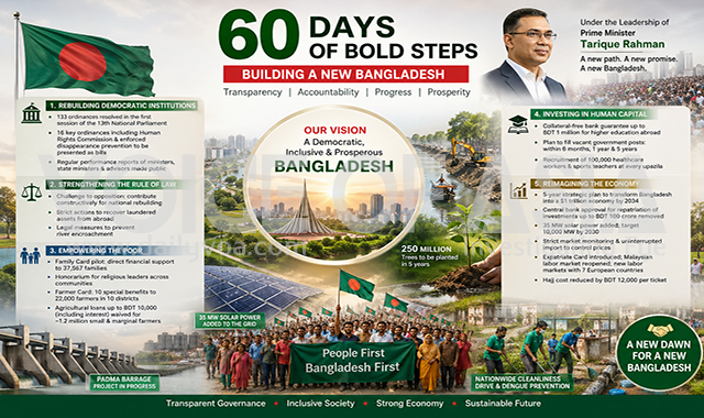The first sixty days of governance by the Bangladesh Nationalist Party have laid the foundation for a new Bangladesh—one that is more transparent, more inclusive, and more hopeful. The real test will be whether this early momentum can be sustained, but the people now have the right to believe that the long democratic winter is giving way to a new dawn.